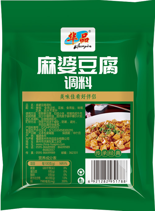 取新鲜豆腐,切成小块,将猪肉或牛肉剁成肉糜,加少许植物油,放肉糜于锅中爆炒片刻,加入本调料、豆腐稍烧即可。