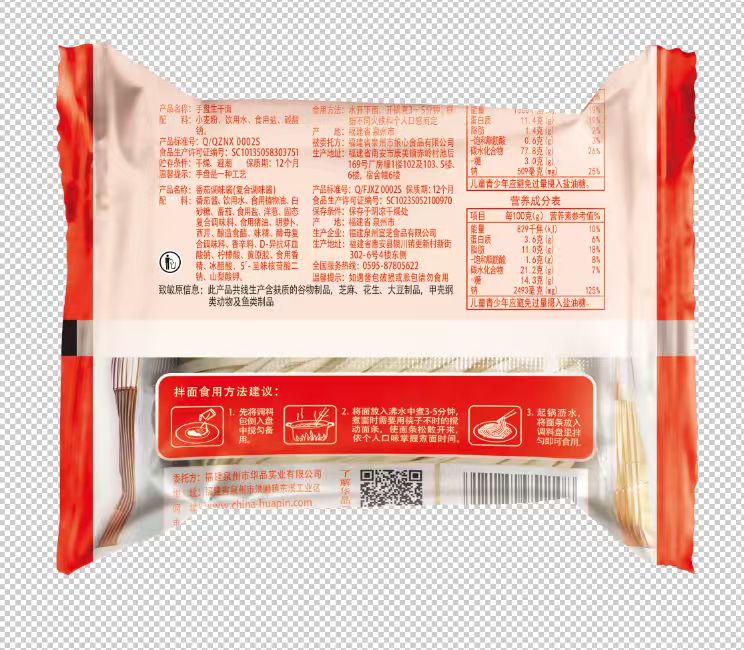 生干面配料:小麦粉、饮用水、食用盐、碳酸钠 番茄调味酱配料:番茄酱、饮用水、食用植物油、白砂糖、番茄、食用盐、洋葱、固态复合调味料、食用猪油、胡萝卜、西芹、酿造食醋、味精、酵母复合调味料、香辛料、D-异抗坏血酸钠、柠檬酸、黄原胶、食用香精、冰醋酸、5’-呈味核苷酸二钠、山梨酸钾