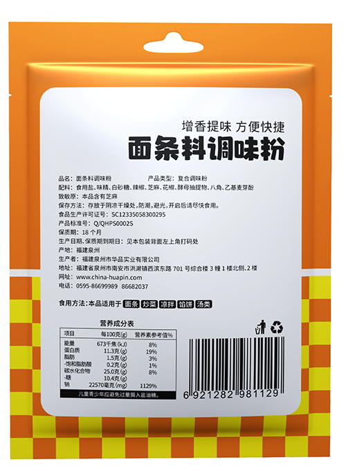 食用盐、味精、白砂糖、辣椒、花椒、蒜片、芫荽、食用香精、酵母抽提物、琥珀酸二钠、脱水芹菜叶、香辛料(八角、小茴香、橘皮、桂皮、山奈、姜片)、5‘-呈味核苷酸二钠